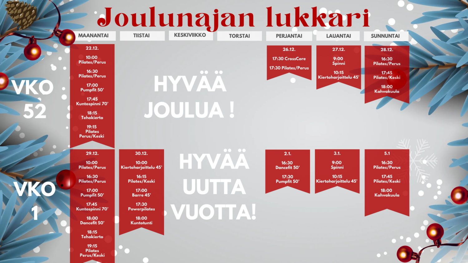 Löydä itsellesi sopiva tunti kattavasta valikoimasta eri Pilatestunteja. Mahdollisuus tehdä myös vakiovaraus tunneille.