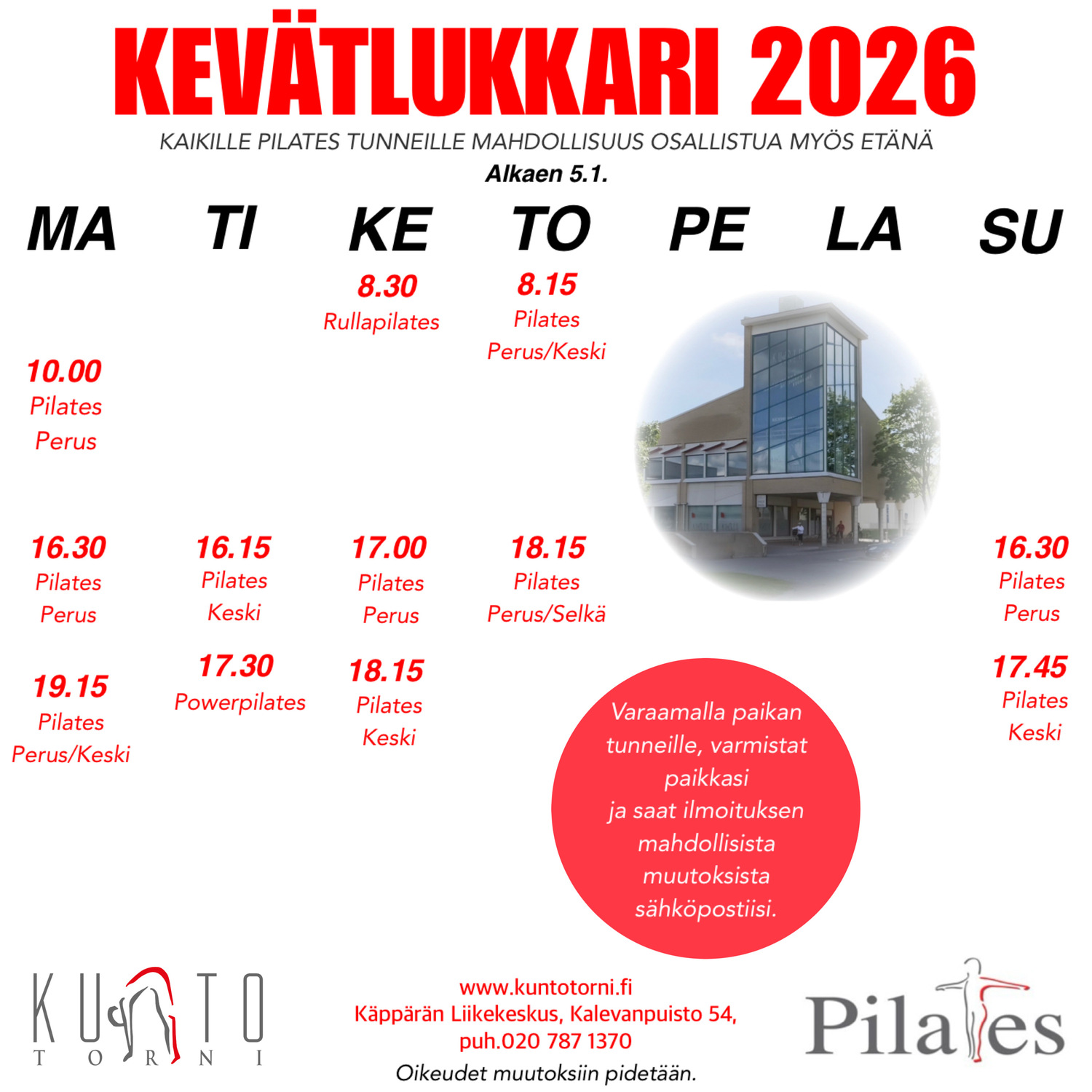 Mitä nopeammin aloitat, sitä nopeammin kehosi kiittää. Nähdään Porin Kuntotornissa Käppärässä!
